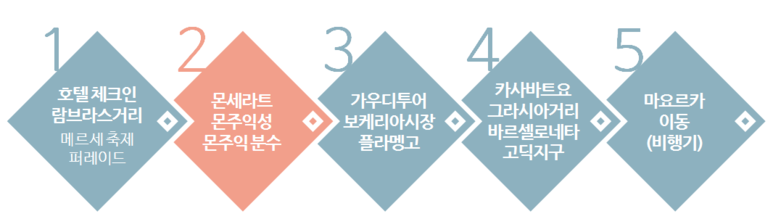 * 식사권이 포함된 티켓도있는데 먹을게 없다는 평이 많아서 식사권은 따로 구매하지도 몬세라트에서 식사를하지도 않았습니다. 간식을 챙겨가면 좋을 것 같아요 :)