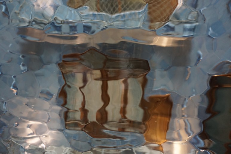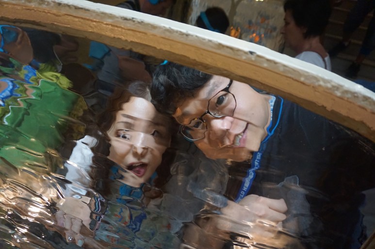이 유리를 통해서보면 건물이 물에 잠긴듯한