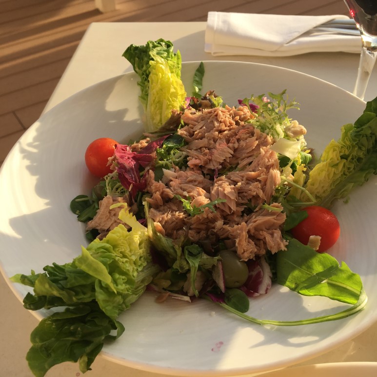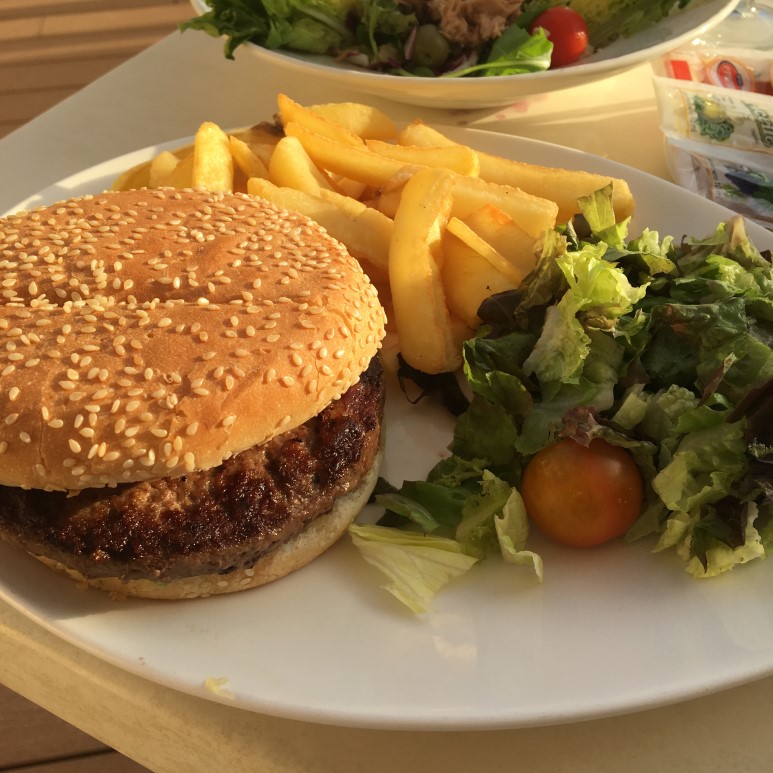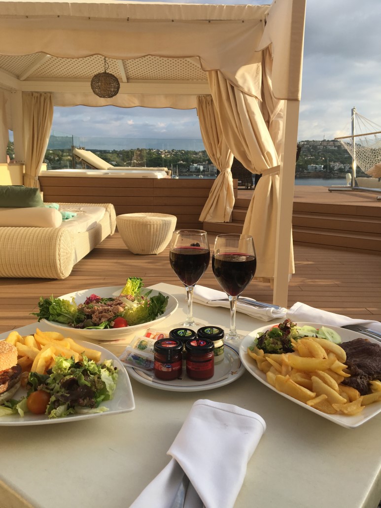 와인 두잔 + 스테이크 + 햄버거 + 투나샐러드