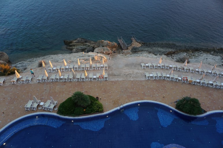 맑고 푸른 지중해바다와 호텔이 닿아있어요. 아름답지요?