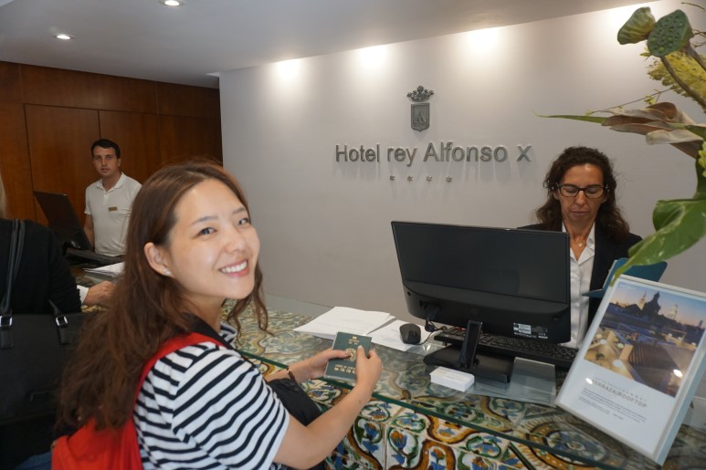 우리가 세비야에서 묵은 호텔은 호텔 레이 알폰소 엑스였습니다. 세비야 호텔 선택시 가장 많이 고려한게 위치였어요. 호텔 레이 알폰소 엑스는 중심가에 위치해있어 세비야 대성당까지 도보로 가깝고, 스페인 광장도 가까웠어요.1박에 16만원 정도에 예약했습니다.(조식포함)