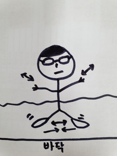 그런데 이상하게 저는 수영장 바닥에 자꾸 닿을려고 했습니다. 너무 깊숙히 갔나 봅니다. 몇번 하다보니 그 간격을 유지하는 감을 익힐 수 있었는데 더 연습을 해야지 싶습니다.